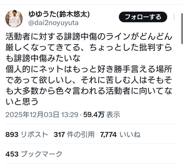 ゆゆうたゆゆうた「活動者に対する誹謗中傷のラインがどんどん厳しくなってる。ちょっとした批判すら誹謗中傷になる。それに苦しむ人は配信者に向いてない」 2025年12月3日 YouTuberニュース速報まとめのまとめ