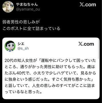 【悲報】弱者男性の悲しみが詰まっているポスト、見つかる