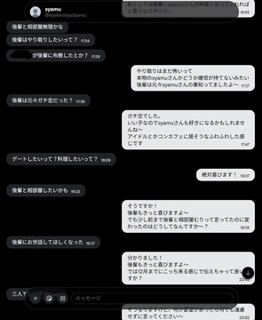 syamu、JK(ネカマ)相手に同棲したい、お世話して欲しい、スカートにかけたいと迫る
